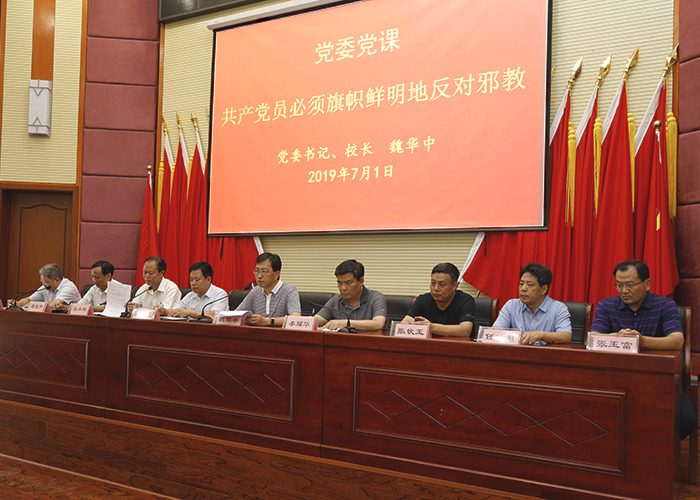 大会在雄壮的国歌声中拉开帷幕,学校党委委员、副校长李耀华同志宣读了表彰人员名单并进行了表彰。学校党委书记、校长魏华中同志为全体党员上了题为《共产党员必须旗帜鲜明的反对邪教》的主题党课,并就杜绝有偿补课、意识形态工作进行了安排部署,提出了具体要求。