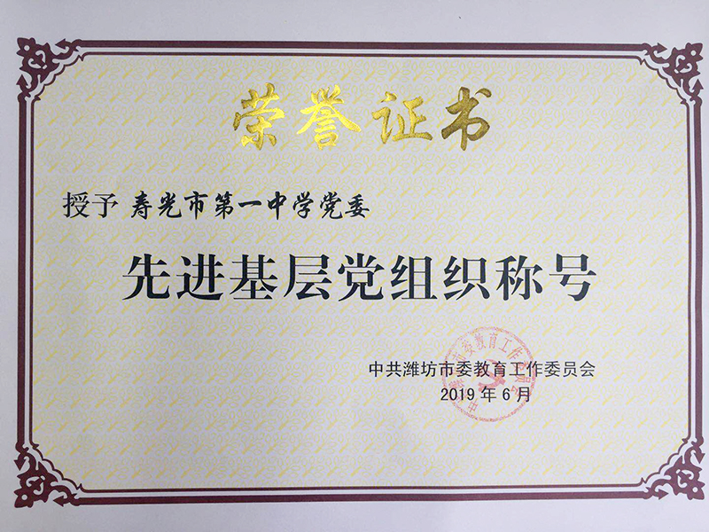 近日,我校党委被中共潍坊市委教育工作委员会授予“先进基层党组织”荣誉称号。