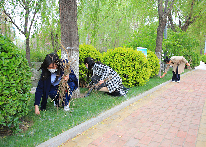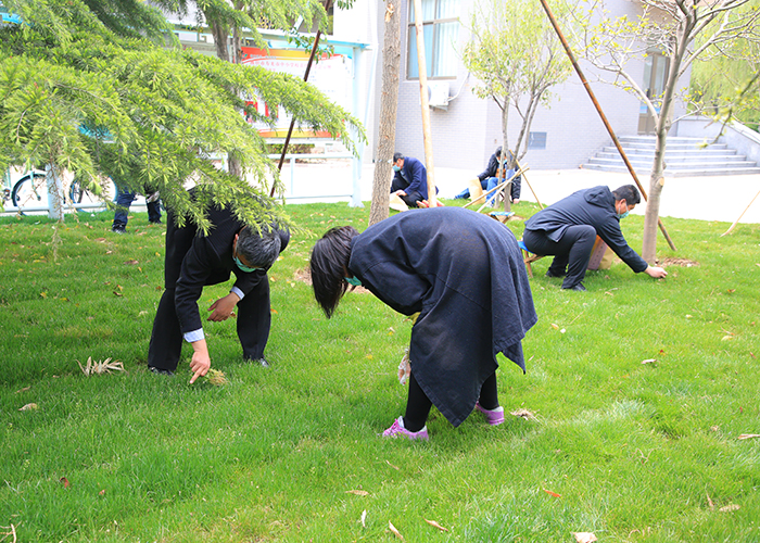 学校行政党支部开展义务除草活动