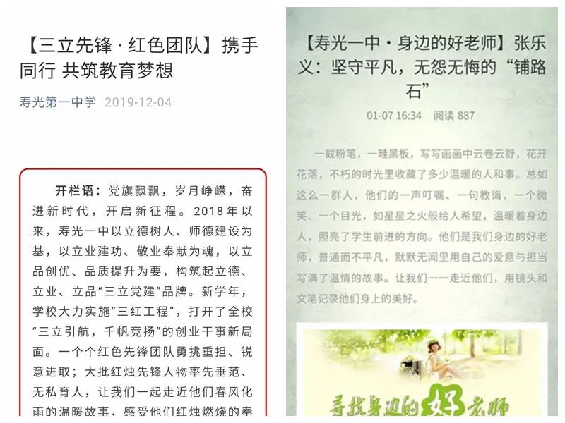 构建“样板间”文化品牌。文化是学校的灵魂,寿光一中党委将文化价值理念、家校合育理念、团队精神等进行有机整合,引导师生内化于心、外化于行。提出了“温暖一中,因您而美”的文化理念,把“学生向往、教师幸福、社会满意”作为学校发展愿景,践行“你希望自己的孩子被什么样的老师教,你就做一个什么样的老师”的工作理念,形成了名师大讲堂、文化艺术节、国旗下主题教育等“样板间”文化品牌,不断丰富学校文化品牌建设。