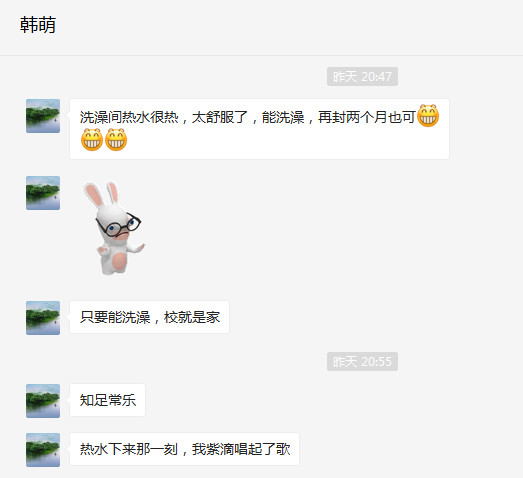 学校封闭管理期间,丁江华的电话时常成为“热线”。事情虽琐碎,但却很关键。本着工作主动、不等不靠,指挥前移、胸有全局的原则,丁江华提前统筹调度,主动对接服务对象,积极协调各种工作。为了保证师生洗上热水澡,他接到电话后二话不说,跟维修师傅爬上楼顶,不惧倒春寒的冷风,将太阳能供水水泵一一检查并维修完毕。调式完成后,又悉心根据师生的不同作息要求,分别设置好更加合理的洗澡时间。“在学校洗个热水澡太舒服了。只要能洗澡,学校就是家!”丁主任笑着说,他忘不了老师们发进微信群的这些“暖心话”,每个字都是扫却疲惫的良药和为师生服务的动力。