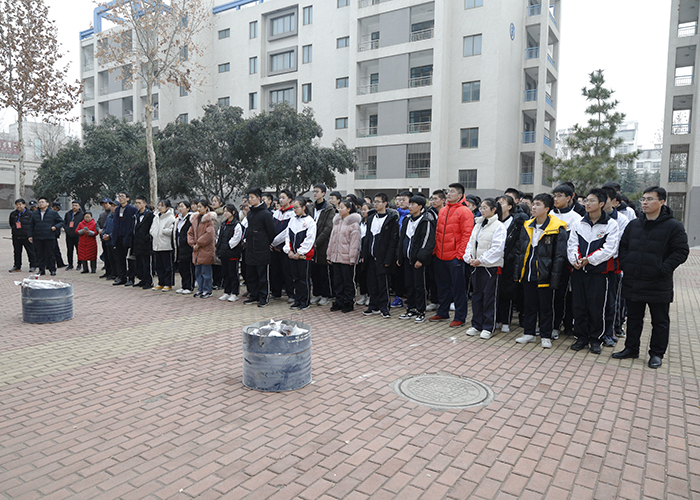 12月24日下午,张钦玉副校长、安保处徐金光主任、各年级级部副主任、各班安全员、教学楼和宿舍楼管理员、安保人员等200余人齐聚坤园内,进行消防演练及灭火培训。