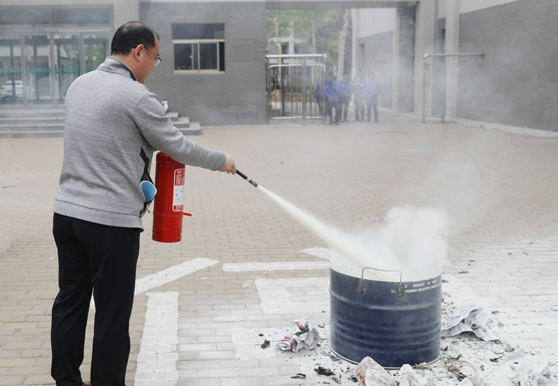 教育处主任张志胜对演练活动的意义和目的进行了强调。安保科科长徐金光通过近期几起典型火灾事故强调全体师生要提升“四个能力”的建设。同时对全体人员进行了灭火器使用培训,内容主要是灭火器的灭火原理,使用方法以及如何判定灭火器的有效性等。部分师生进行了现场灭火操作。