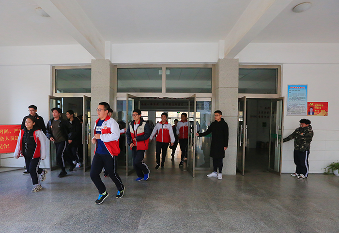 演练前,教育处对演练各个环节进行了周密安排和部署。9点40分,警报响起,任课教师立即指挥学生紧急疏散,教师打开前门,同时命令后排靠门的同学打开后门,然后指挥学生按指定路线进行有序疏散。各班疏散到集合地点后,班主任清查班级人数并向级部主任汇总。演练中,学生们还模拟了在疏散时发生了意外及正确的处置方法。