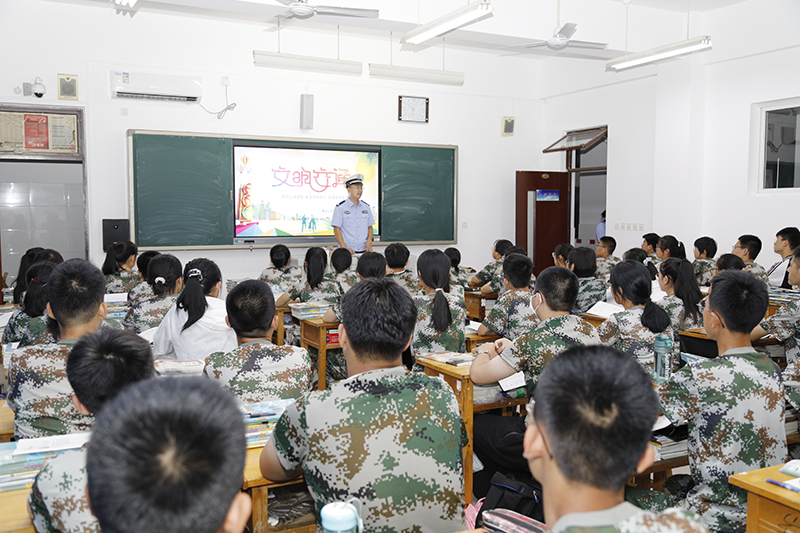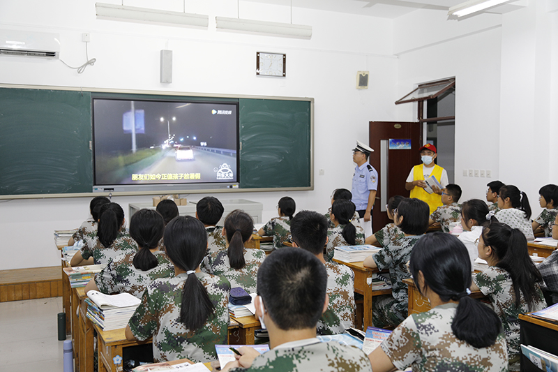 课上,交警潘海刚深入浅出,通过多组数据、真实案例介绍了交通违法行为的惨痛代价;教育学生上、放学时步行、骑自行车、骑电动车应各行其道,遵守信号灯指示,不逆行、不并行、不超速,骑电动车要佩戴头盔等。同学们还观看了交通违法警示宣传片,随后,交警大队警官和志愿者为学生们发放了“交通安全宣传单”和“一盔一带 安全常在”警示标志。
