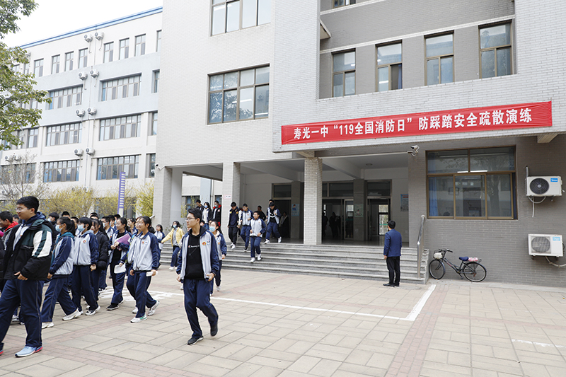 多年来,寿光一中一直高度重视安全教育工作,定期举行“5.12”地震灾害逃生演练、火灾事故应急逃生演练、消防灭火演练、“安全教育日”紧急疏散演练以及安全疏散防踩踏演练等一系列安全教育活动。“校园安全”校本课程配合安全模拟演练,真正把安全教育落到实处,用到实处,防患于未然,为继续创建“平安校园”“和谐校园”而不懈努力。