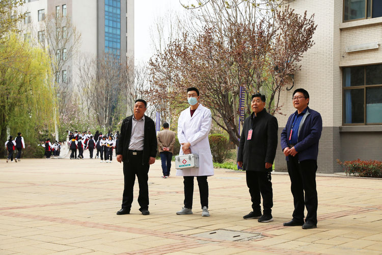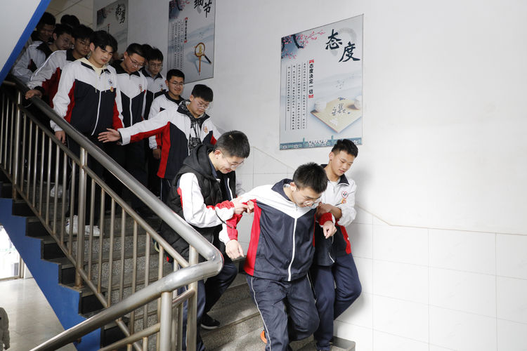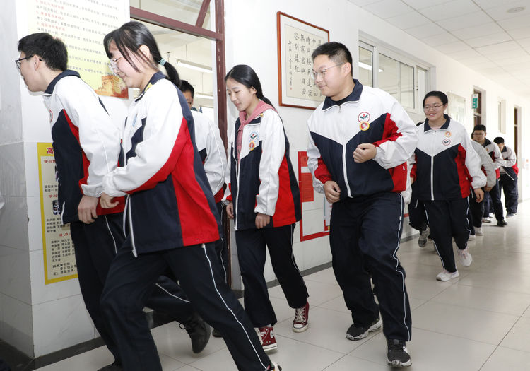 下午3点30分,警报响起,任课教师立即指挥学生紧急疏散,教师打开前门,同时命令后排靠门的同学打开后门,然后指挥学生按指定路线进行有序疏散。各班疏散到集合地点后,班主任清查班级人数并向级部主任汇总。演练中,学生们还模拟了在疏散时发生了意外及正确的处置方法。