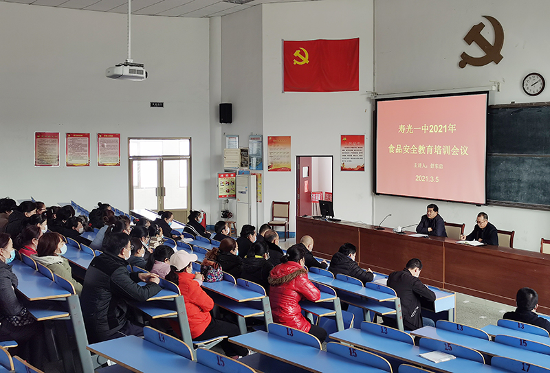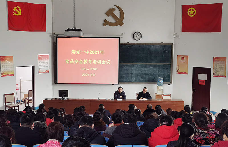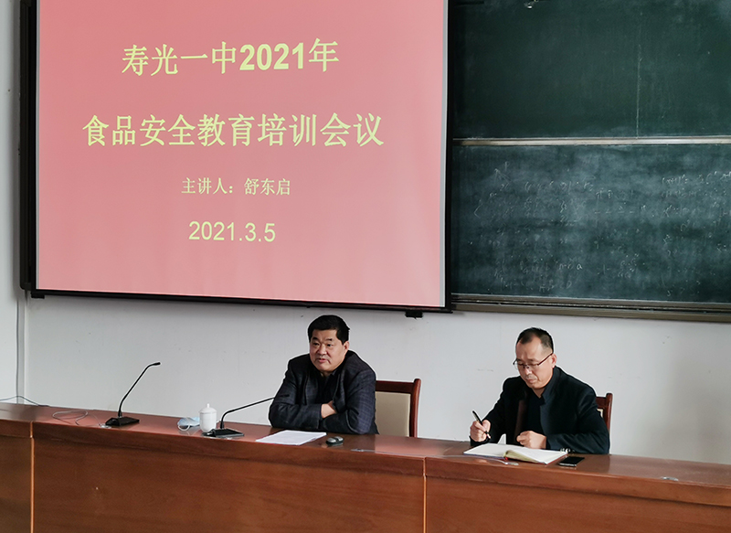 为进一步增强食品安全责任意识,提升食品安全管理能力,全面做好常态化疫情防控下学校食品安全工作,3月5日,我校膳食处召开2021年食品安全教育培训会议,邀请圣城街道市场监管所副所长舒东启进行食品安全培训,膳食处主任武继国主持。