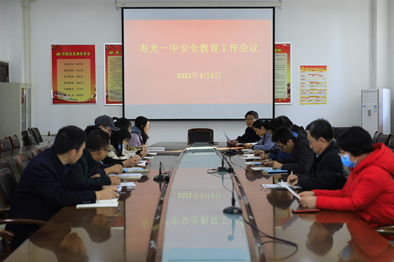 会议要求,要树牢安全意识,务必把校园安全工作摆在首要位置来抓。要切实做好《寿光一中安全与健康知识手册》备课,要求各年级利用班会时间进行安全教育授课。牢固树立“安全第一,防范第一”“学校安全无小事”的思想,树立“责任重于泰山”的意识。不断提高认识,严格管理。会议还就安全教育周开展、安全隐患排查等工作做了具体安排。