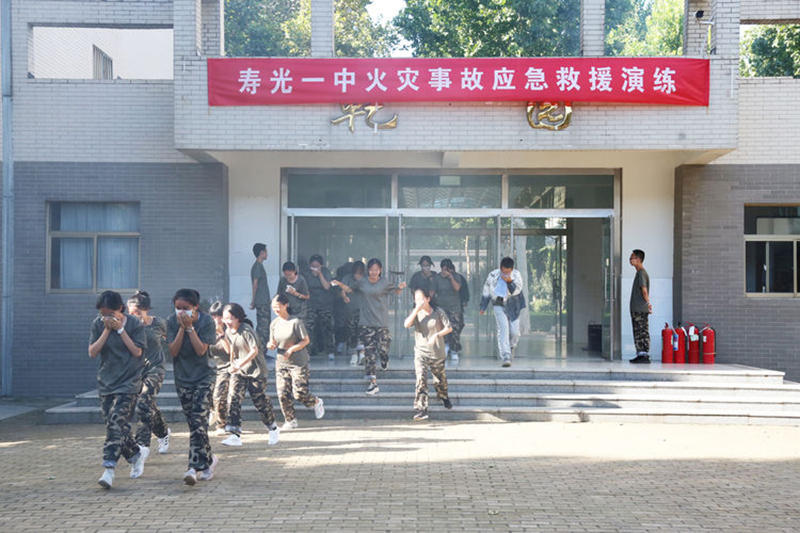 多年来,寿光一中一直高度重视安全教育工作,定期举行火灾事故应急救援演练、“5.12”地震灾害逃生演练、火灾事故应急逃生演练、安全疏散防踩踏演练等一系列安全教育活动。从新生入学起,结合“开学第一课”校本课程,把课堂教授课程与安全模拟演练课程相结合,在行动中把安全教育落到实处,用到实处,防患于未然,为继续创建“平安校园”“和谐校园”而不懈努力。