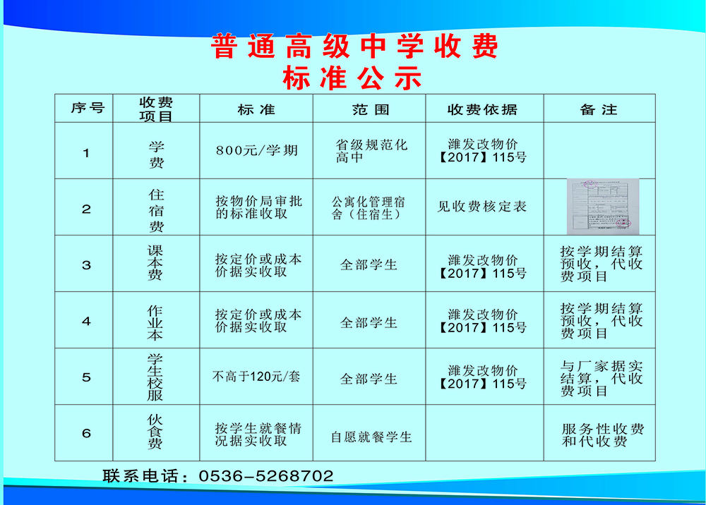 普通高级中学收费标准公示