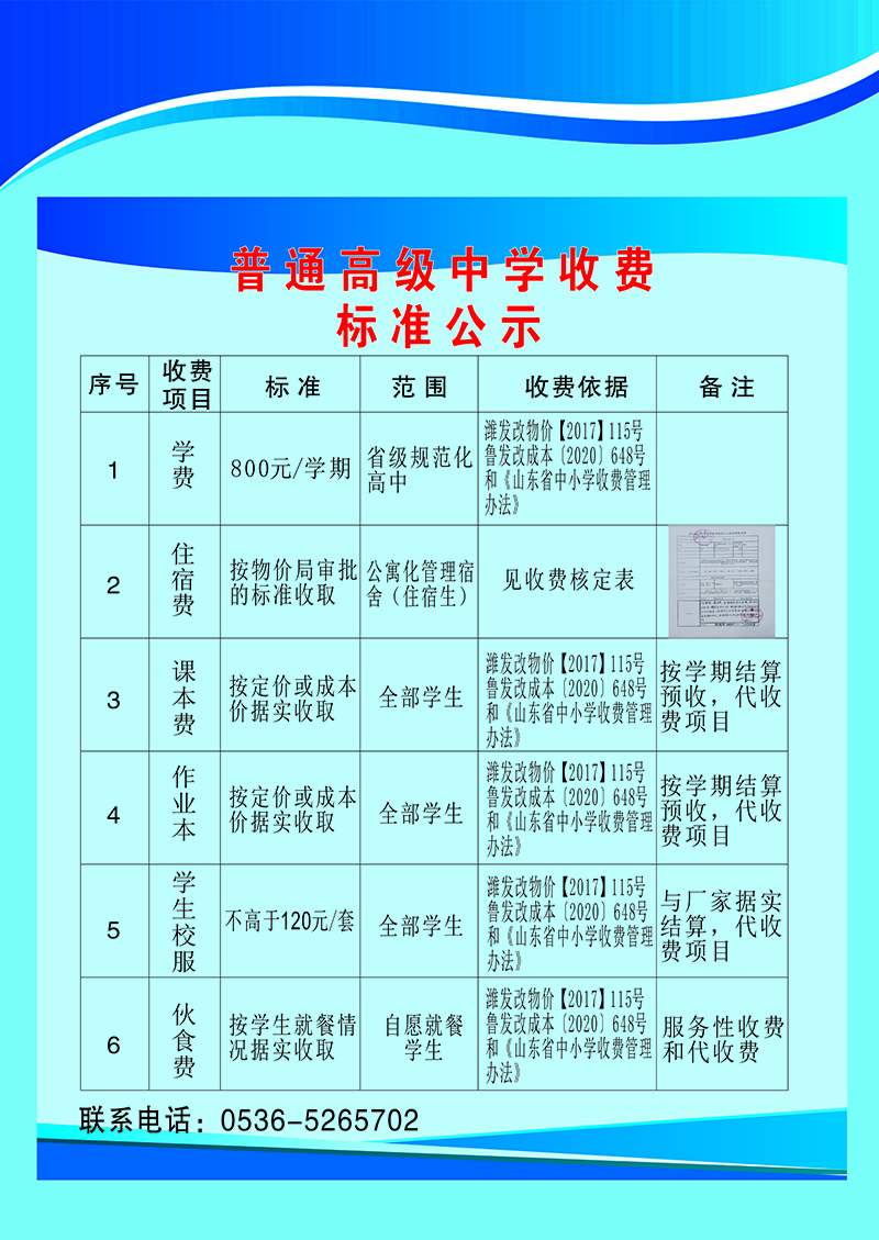普通高级中学2023年收费标准公示