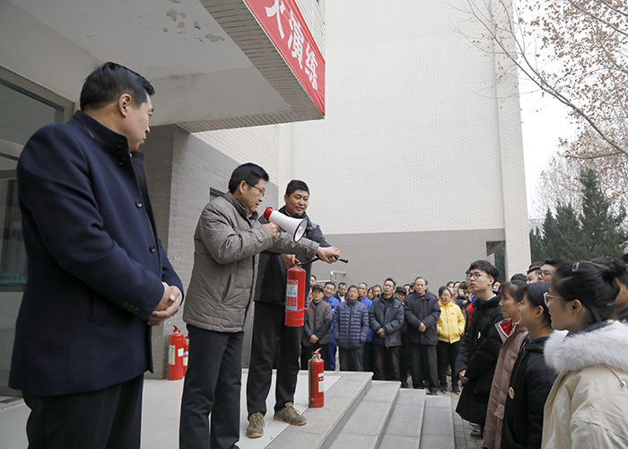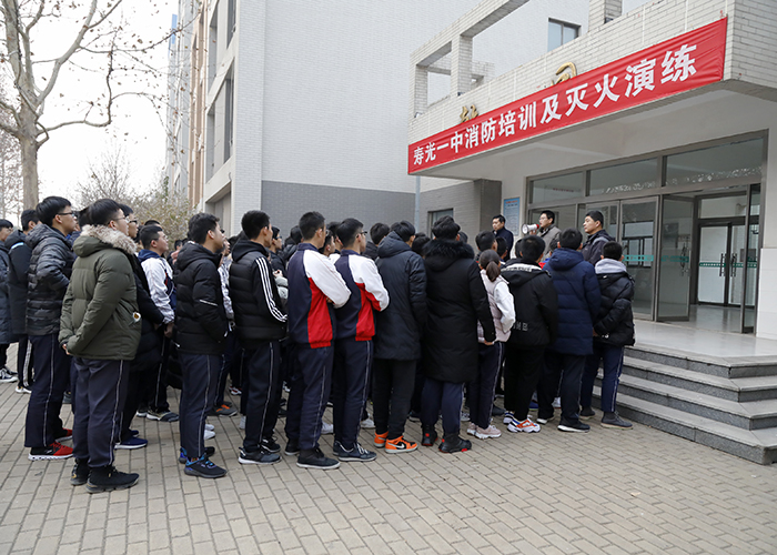 我校于12月21日上午组织全体楼管员、宿舍管理员、高中部和初中部各班安全员在乾园进行了消防灭火演练。教育处张志胜主任、安保科徐金光主任和各级部副主任参加了演练活动。