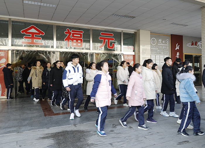 演练模拟了学生大课间在超市选购商品时的场景,突发紧急情况,学生安全疏散。演练前,安全保卫科科长徐金光对演练各环节进行了安排和部署。9点10分,教育处主任张志胜宣布演练开始,学生快步且有序走出超市,在指定位置集合。张志胜主任对演练进行了总结,他强调安全是学校一切活动的重中之重,要时刻绷紧安全之弦。希望大家通过演练增强安全防范意识,提高自救和逃生的应急反应能力。