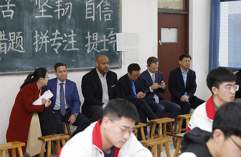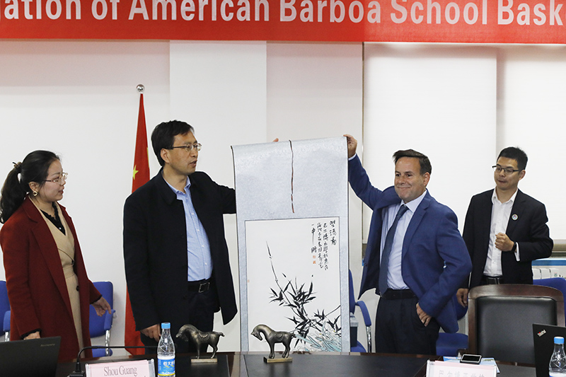 春雨润春色,喜迎友人来。4月9日,我校春色满园,美国加州阿斯顿教育集团董事长David Wisner、集团CEO Adam Godwin和圣地亚哥巴尔博亚学校校长兼篮球队主教练Zack一行走进美丽的寿光一中校园,和师生们开展了教学、篮球比赛等交流活动。我校校长、党委书记魏华中陪同。
