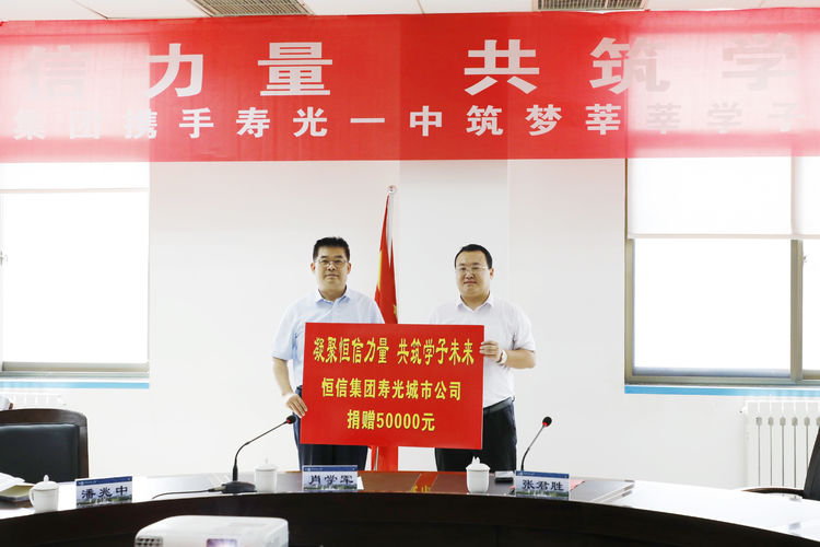 9月7日,潍坊恒信建设集团有限公司寿光城市公司教育捐赠仪式在我校举行,总经理张君胜代表公司捐赠助学金5万元,帮助莘莘学子筑梦圆梦。恒信集团以“倾力于人民的安居乐业”为企业使命,多年来,积极参与到城市建设、住房保障、社区运营等事业当中。已成长为山东省百强民营企业的恒信集团勇担社会责任、热心教育事业,希望以捐资助学的方式凝聚恒信力量,共筑学子未来。