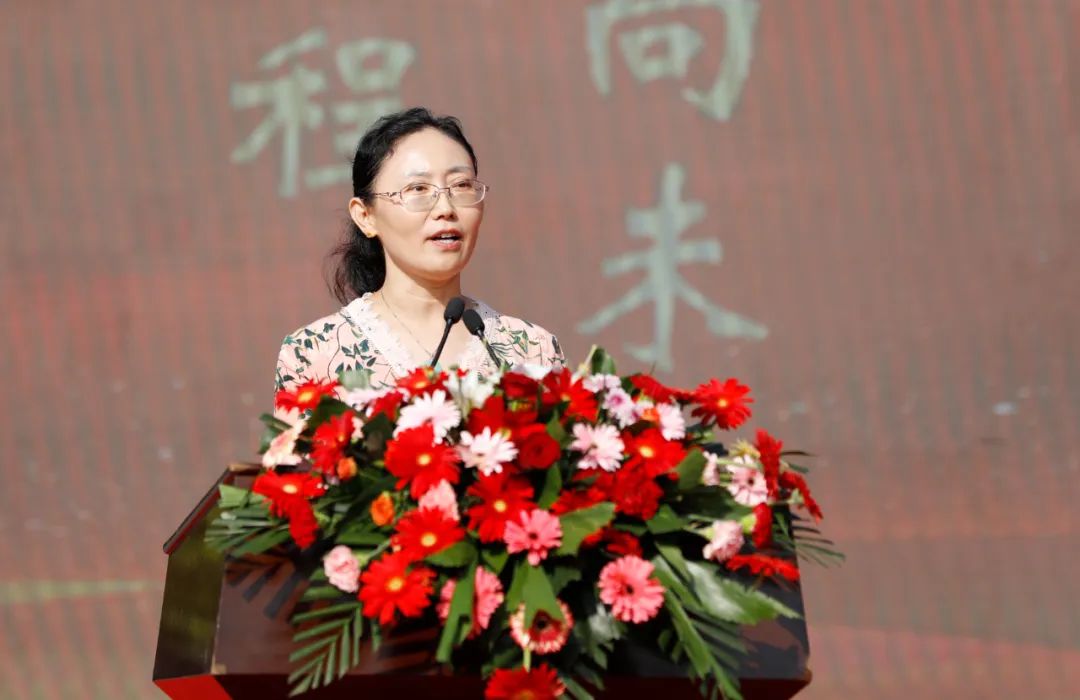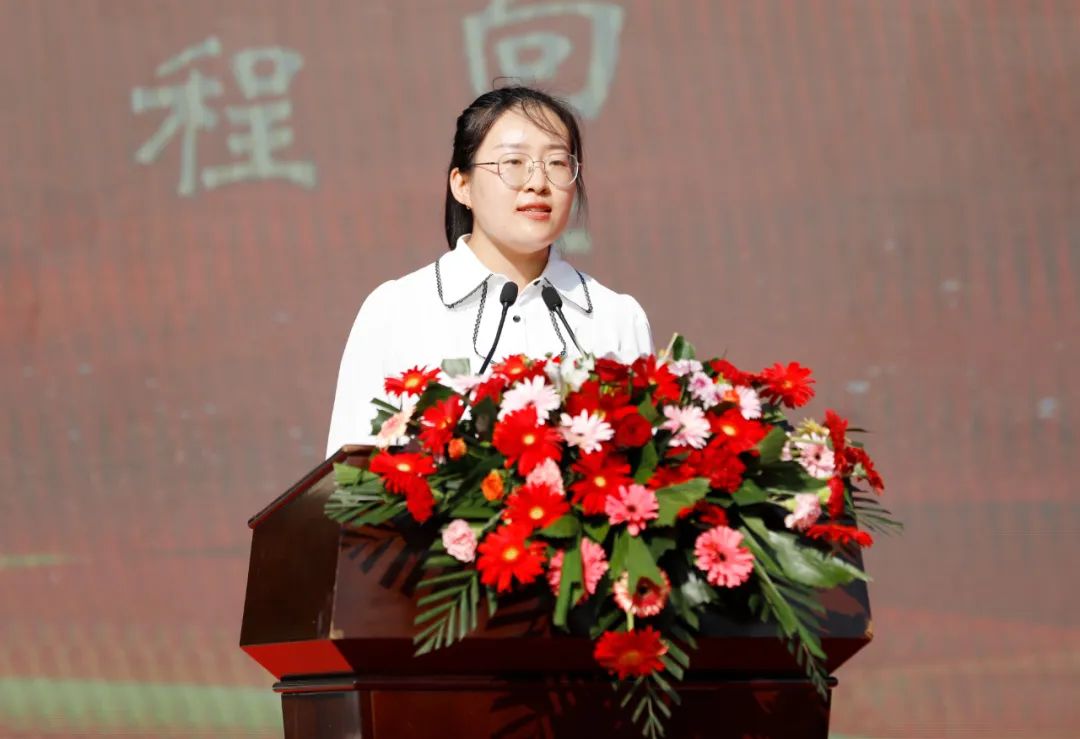 新学期不仅是学生新的起跑线,也是老师们勤奋耕耘的延续。教师代表王伟红老师上台发言,她希望同学们执笔为剑、心无旁骛、全力以赴,携手并进!