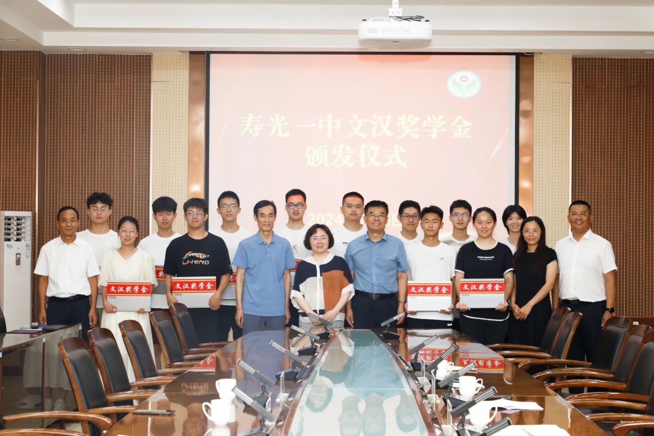 倾心助学显担当,携手筑梦燃希望。7月5日,寿光市第一中学文汉奖学金、杨涛奖学金颁发仪式在行政楼第一会议室举行。青岛百草新材料公司副总经理刘宇及文汉奖学金代理人黄效德现场为受奖学子颁发奖学金,学校校长肖学军,党委委员何祥坤,强基部主任张晓霞参加助学仪式,副校长潘兆中主持仪式。