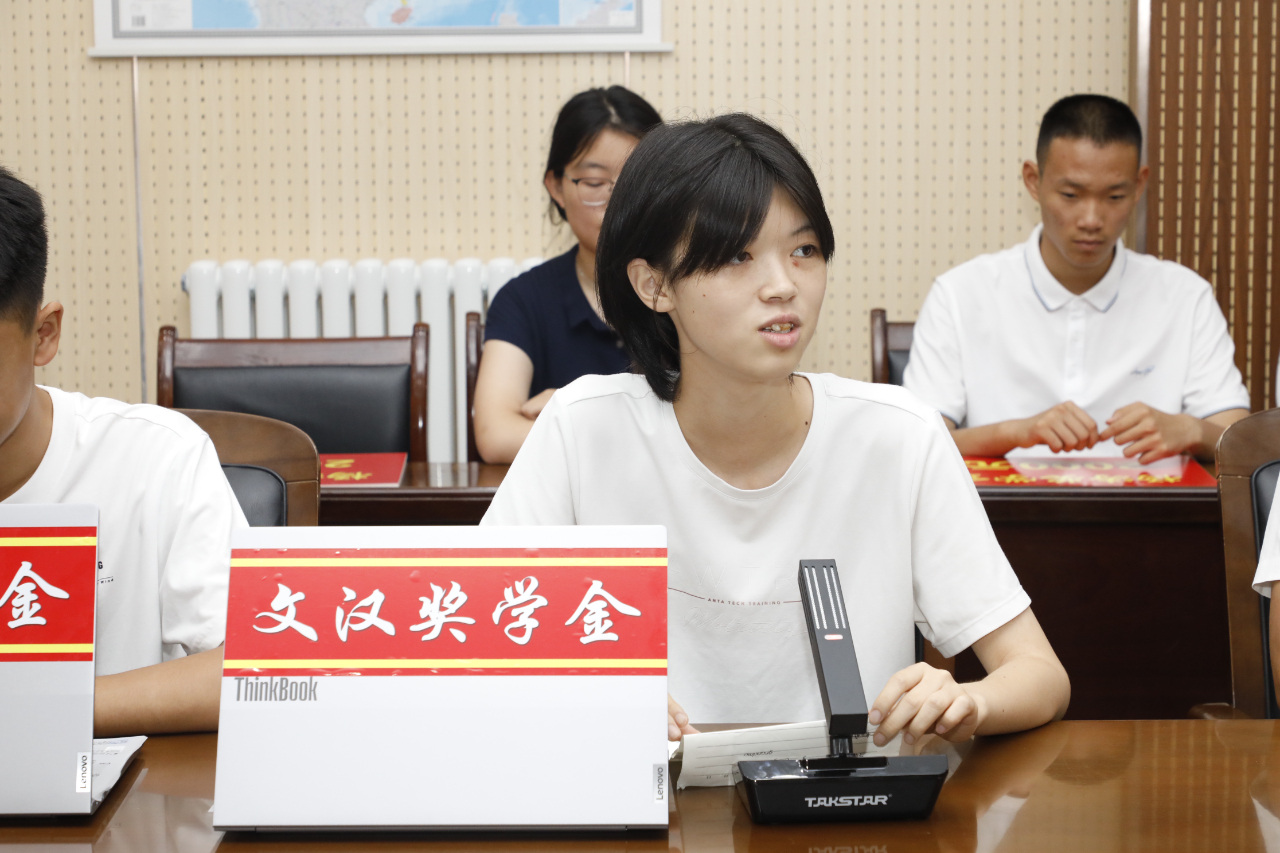文汉奖学金于2008年由黄文汉先生每年出资10万元在我校设立的,其子黄效华是我校1982级校友,现任百事基材料(青岛)股份有限公司董事长,奖励对象为高考优秀毕业生及在校贫困生,本次受奖的12名优秀毕业生每人各获得价值6000余元的笔记本电脑一台;杨涛奖学金是我校2002级校友杨涛先生2020年设立的,总出资20万元,用于奖励品学兼优、高考成绩优秀的学生,本次受奖的21名学生每人获得奖学金2000元。