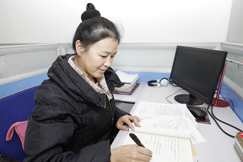 “除了班主任,金老师几乎是每天最早到达办公室的学科老师。”2017级2部的级部主任于洪雷这样评价金老师。学生有自习时,她就到教室盯靠,没有自习课时,她也会去教室转一圈,提醒基础较弱的学生坚持早读。