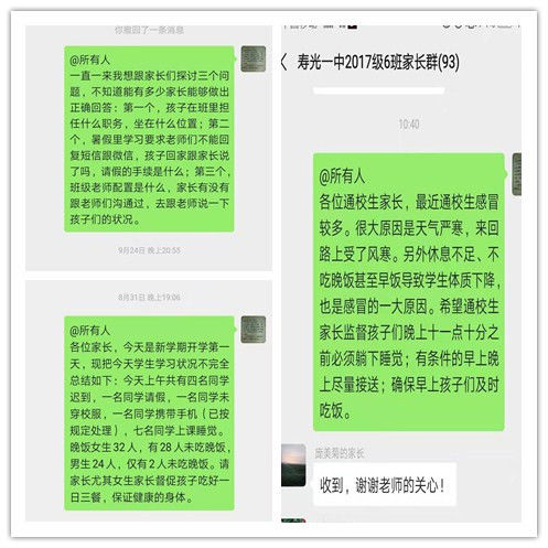 寻常之处见功力,细微之处见真章。只要有时间,张乐义就在班级家长微信群、QQ群里,分享一些信息和心得,即使工作再忙,也一定会在第一时间回复家长们的信息,时刻与家长保持紧密联系,让学校教育与家庭教育形成一股强大的教育合力,让孩子们得到更好的成长,获得了家长们的一致赞誉。