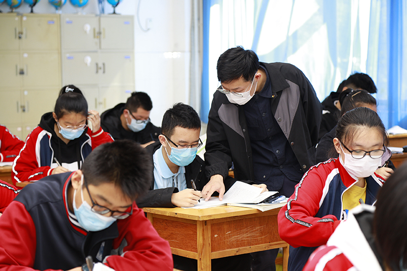 作为班主任,李凡非不仅肩负着每天的班级管理任务,还担负着毕业班的教学重任。放下体温枪与记录本,他又拿起了课本与试卷,开始了知识的“浇灌与滋养”。他一直倡导“在兴趣中学习,在过程中拓展学生们的思维”的教育理念,引导学生去观察、发现、思考。每次上课前,李老师都准备得很充分,并在教学中穿插一些幽默笑话,课堂充满乐趣,赢得了学生们的喜爱。每次习题讲评,他耐心地解答学生的疑惑,从没有过一丝不悦和着急。