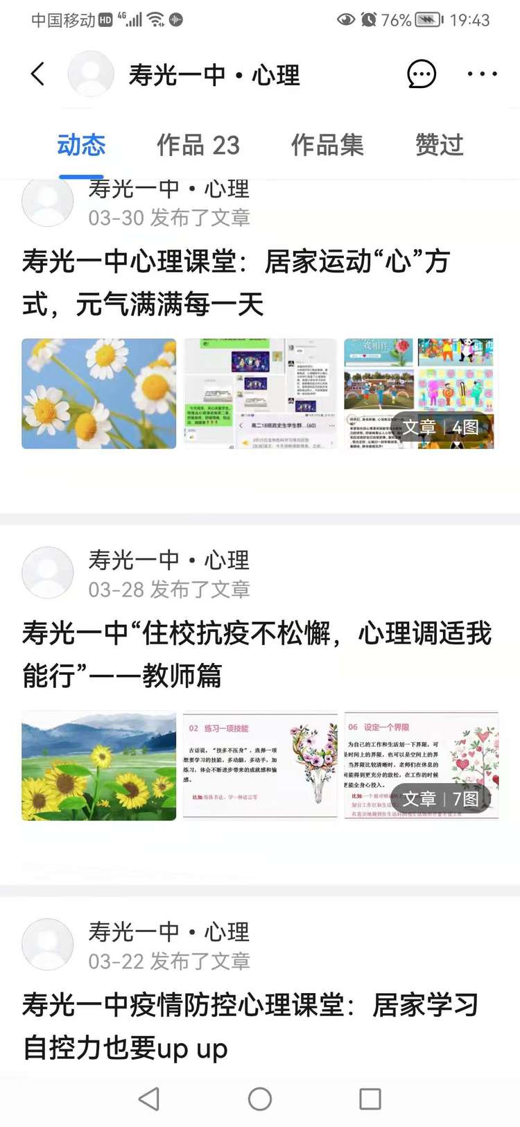 健康心态是疫情防控的“心理口罩”,及时做好家校沟通和师生心理辅导是特殊时期学校工作的重中之重。由于高三学生实行封闭管理,特殊群体学生和通校生在高考的压力下,面对活动空间相对变小,生活不适应等问题,张志胜积极组织班主任和心理辅导教师开展针对帮扶,做到生生有包靠,困难有办法,问题有解决。所有的班主任和任课老师,在课堂上或是课间,他们着重留意那些情绪异常,状态不佳的学生,通过和他们聊聊天,或是拿出自己的手机,让学生们与家长打个视频电话,这样就有效缓解了他们的紧张、不安及焦躁的负面情绪。学生发展指导中心的老师定期编辑发布“寿光一中疫情防控之自我心理调适”学生篇、教师篇、家长篇等美篇,讲解心理调适的方法,帮助师生、家长度过心理困境期,确保封闭管理师生的心理安全。
