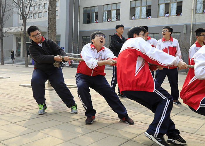 本次比赛采用三局两胜淘汰制,各班选派10男5女参加比赛,参赛的学生们在比赛之中争得面红耳赤、气喘吁吁,老师和学生们组成的啦啦队加油呐喊助威声响彻在校园中,为激烈的比赛更增添了紧张的气氛,裁判员仔细数清参赛人数,保证每场比赛的公平、公正。比赛中,时常会出现僵持局面,双方一时难分胜负,“拔河比赛勇者胜”,只有把拼搏精神发挥到最后一刻的队伍获得了胜利。