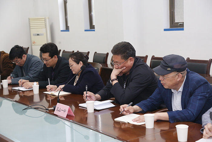 座谈会上,王校长向郭崇江校长一行介绍了学校的规划布局、功能划分、发展历程、教育教学、高考成绩等情况。随后,乳山市第一中学的领导老师与我校相关年级、科室就教学改革、养成教育、学生管理、选课走班、课程设置等方面进行了交流和探讨,并深入课堂听课,与一线教师交流。他们对我校的办学理念、教育教学及学生精细化管理等方面给予了充分肯定和高度评价。