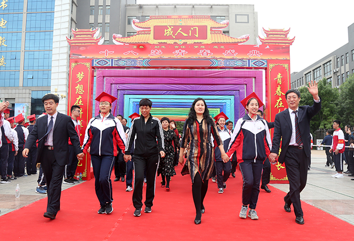迈入成人门,走好人生路。学生们挽起家长的手,在音乐声中依次踏上红地毯,走过“成人门”,他们眼神坚毅、步伐坚定,每个人脸上都写满了温馨和喜悦。大门的两侧,是静心等候的学校领导,他们注视着每位跨过“成人门”的同学,为他们鼓掌祝福,祝愿他们长大成人,走好人生每一步。