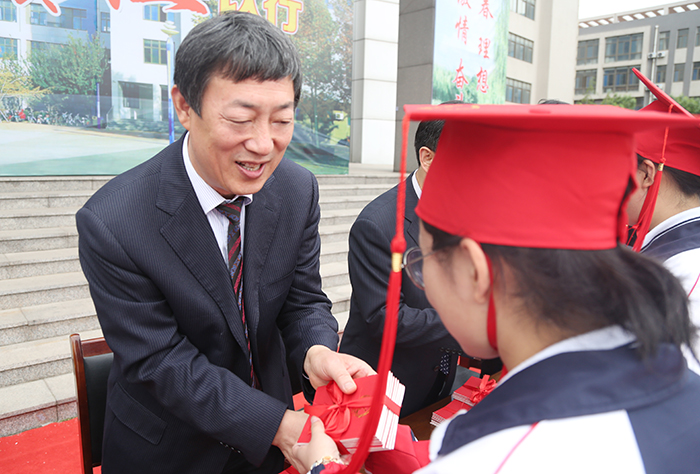 18年,这段不短的时光中,承载了父母数不尽的辛劳,也浸润了老师们的关爱,这爱最纯、最真、最浓。一首家长代表和学生代表演绎的诗朗诵《十八岁交响曲》,同学们一起回忆、一起感悟、一起唱响了十八岁的心声:老师,你们辛苦了。随后,副校长潘兆中也表达了对学生们的深情祝福和嘱托。