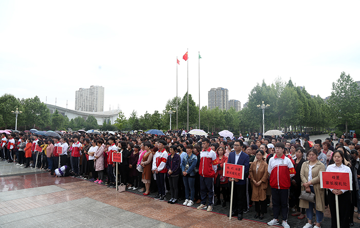 5月5日上午,我校为2016级全体学生举行了以“十八而志,责任以行”为主题的十八岁成人礼,为踏入18岁的学子们奉献了一场别开生面的“青春洗礼”。学校领导与5000多位学生和家长一道,共同见证一场庄严而华彩的成人礼,见证学子终身难忘的幸福时刻。