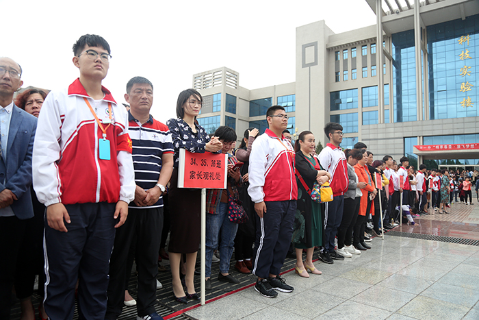 在庄严的升国旗仪式后,学校为同学们举行了隆重而感人的冠礼仪式。十八年来默默陪伴孩子成长的父母亲手为孩子冠带成人帽,见证他们成人的庄严一刻。学生对父母三鞠躬,感谢父母18年来含辛茹苦地养育。在这暖流交汇的时刻,孩子们与父母深情拥抱在一起,用真情拥抱表达对父母18年来无私付出的感谢、感恩!并大胆对父母道一声“爸、妈,我爱你!”此时此刻,许多父母热泪盈眶、为之动容,场面温馨而感人,他们真切地感受到孩子们长大了,懂事了。