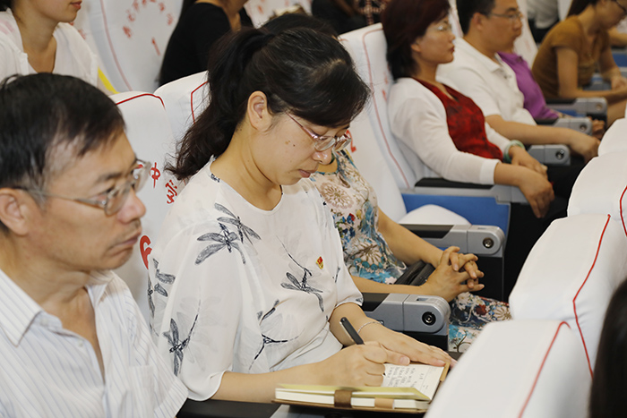学校党委书记、校长王继林作讲话并上党课,宣讲《习近平新时代中国特色社会主义思想三十讲》。他结合学校工作实际,从学习贯彻《习近平新时代中国特色社会主义思想三十讲》的重要意义入手,全面阐述了提升我校党建工作质量的推进原则和实施路径,对当前和今后一段时间党建重点工作进行了安排部署。王校长要求,要抓好习近平新时代中国特色社会主义思想和党的十九大精神的学习贯彻,继续深入推进学校党支部“四制工作法”,扎实做好“三会一课”、支部生活日等。把党建工作与实际工作作好结合、融为一体,落实“将党员培养成教育教学骨干,将教育教学骨干培养成党员”的双培养机制,党员教育与教职工思想教育作好结合,理论学习与业务学习作好结合,活动开展与师德师风、教师专业成长、学生德育作好结合,将立德树人根本任务融入教育教学全过程,达到抓实党建工作促进教育教学的工作实效。