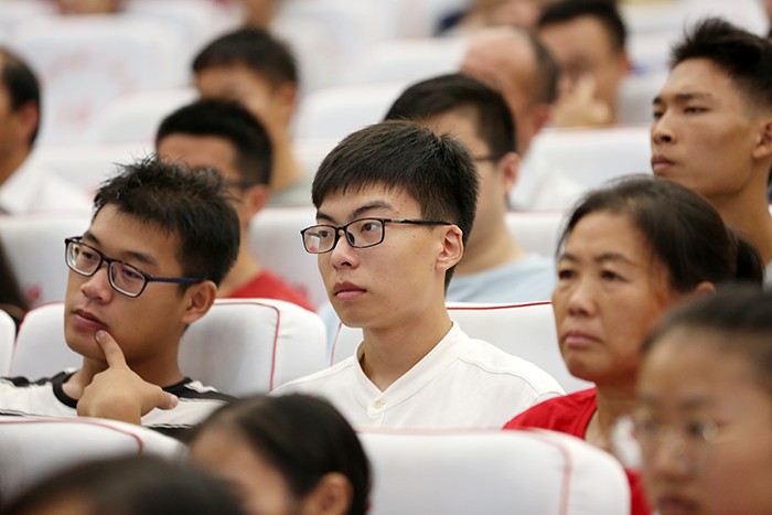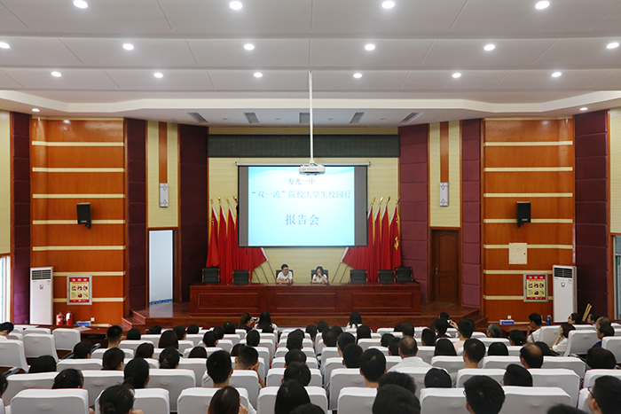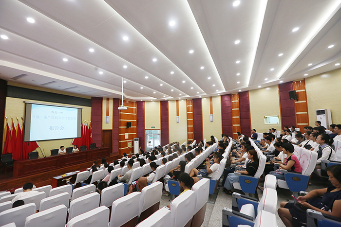 为鼓励和吸引在校大学生学好本领,回报家乡,推动我市经济快速发展,根据潍坊市教育局文件“百千万英才校友潍坊行”活动的要求,今年暑假我校组织开展了“双一流”院校大学生母校行活动,邀请了部分优秀大学生重回母校。 8月18日上午,多所“双一流”高校的学生代表齐聚校园,中国人民大学张婧、山东大学袁昆作报告。学校校长王继林,副校长李东洲、梁本江出席活动。