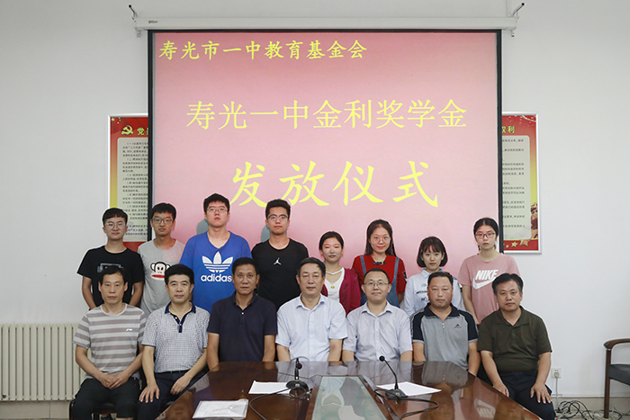 寿光一中金利奖学金由潍坊市同信保温工程有限公司董事长孙金利先生于2016年7月设立,为感恩社会,鼓励我校学子努力学习,每年出资5万元,奖励在高考中取得优异成绩的学生。今年刘冰冰、李宜泽、孙泽坤、谭德邻、冯靖涵、李佳迅、袁雨晨、林田润、王迪雅、任颖颖十名同学每人获奖5000元。