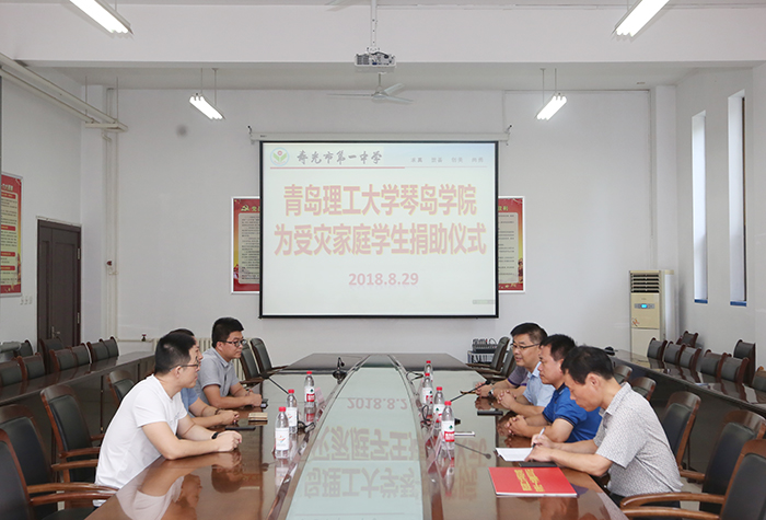 8月29日上午,青岛理工大学琴岛学院团委书记孙海清、学生处副处长董彦禄、招生就业办公室副主任张克诚一行来到我校,向学校受灾家庭学生捐赠了20000元,希望能帮助受困学生尽快走出受灾困境,顺利入学、升学。市教育局教学科研中心主任肖学军、我校副校长梁本江、工会主任李万波、校友办科长董经业参加活动。