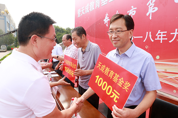 天成教育基金成立 奖教助学 在典礼上,天成集团再次发扬大爱精神,出资30万元设立天成教育基金,奖教助学,激励学子奋发上进,助力他们圆梦大学。
