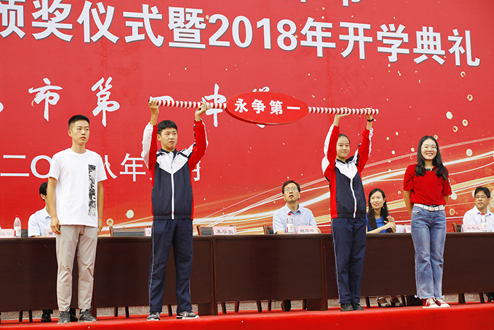 学校薪火之所以生生不息,成绩之所以年年辉煌,就是因为有一级又一级的同学在这里拼搏奋斗。典礼上,2015级两名准大学生代表向2016级同学传递高考接力棒。这是拼搏的接力,这是精神的传承。2018级新生是一中校园新主人, 准备好了迎接新求学之路的挑战。