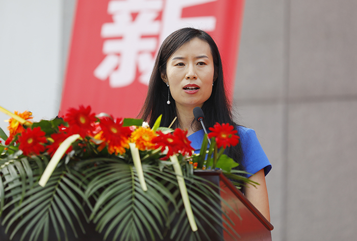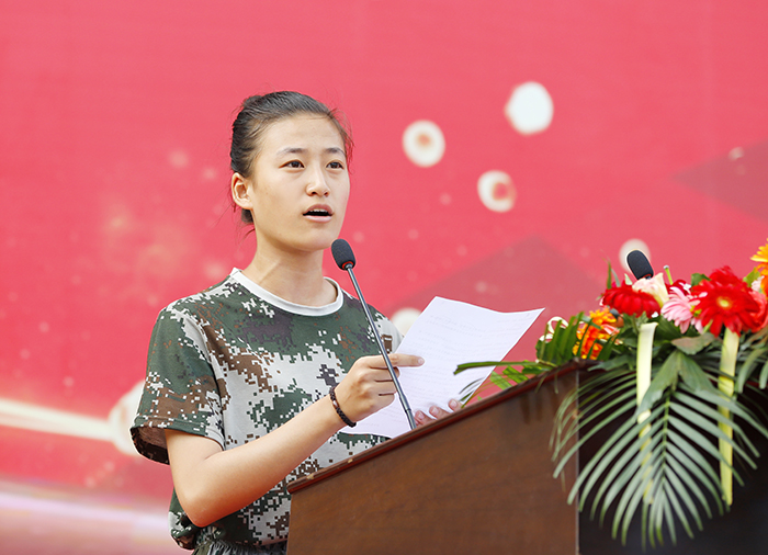 教师代表孙玉倩:“选择一中是奋斗的开始,全力拼搏才能收获崭新的明天。我代表全体教师承诺,将一如既往,对孩子们以严导行、以爱暖心,努力做一名合格的教育者,而不是教书匠。”