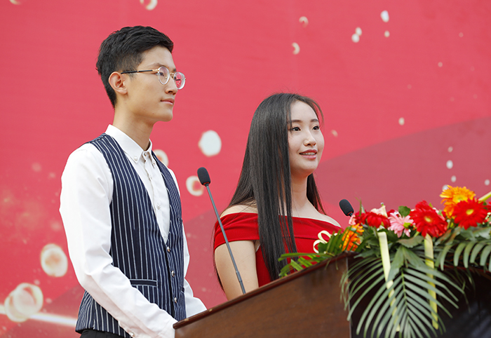 学生代表蒋止戈:“我们一定会以历年高考骄子为榜样,摒弃杂念、沉下心来扎实学习,用老师教授的知识不断充实自己,提升自己。相信,三年后的我们,一定能实现梦想,书写寿光一中新辉煌。”