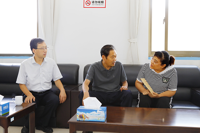 朱导泉将慰问金递到刘堃吉老师手中,亲切地询问她的家庭生活情况和身体健康状况,并嘱咐其要保持平和心态,积极乐观的生活。