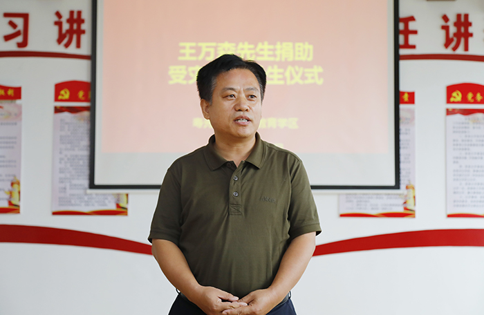 王万森教授今年76岁,是山东师范大学博士生导师、山东省人民政府参事。他虽然已退休,但时刻关注教育动态。此前,他得知寿光不少学生家庭因洪灾受困,这让他忧心不已。为了不让学生因灾失学,他从退休金中拿出了10000元,委托我校校长魏华中转赠给家庭受灾比较严重的学生。