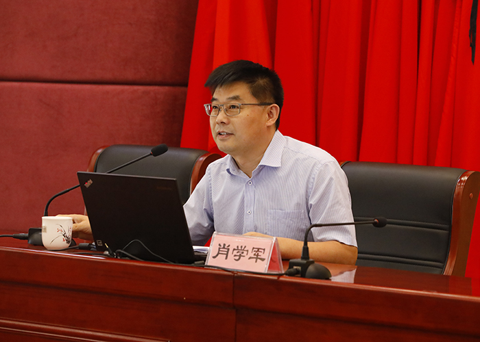 教科研中心副主任肖学军发言,总结了我市高中2018年教学工作经验,分析了当前工作中存在的问题,研究部署新学年全市普通高中教育教学工作和2019年高考备考工作。