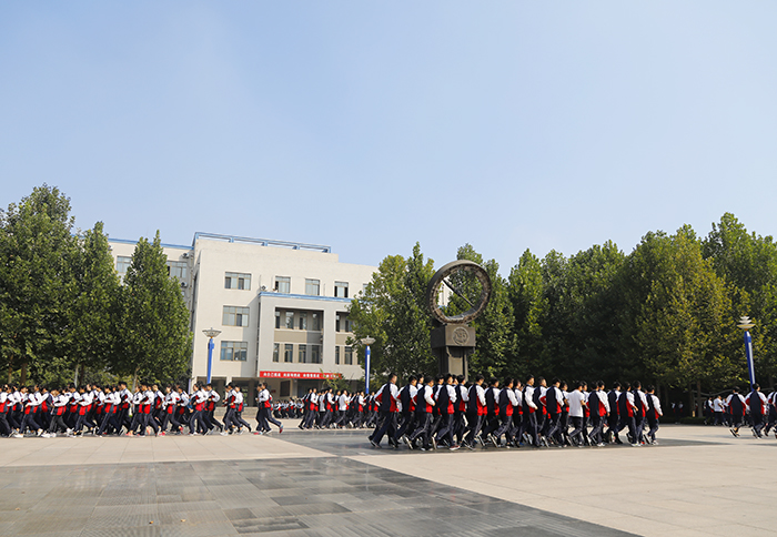 评委从集合速度、校服着装、队列队形、班级口号、精神状态等方面对各班进行综合评价。比赛中,各班伴随着整齐的步伐,嘹亮的口号,同学们昂扬、向上的精神状态,给评委留下了深刻印象。