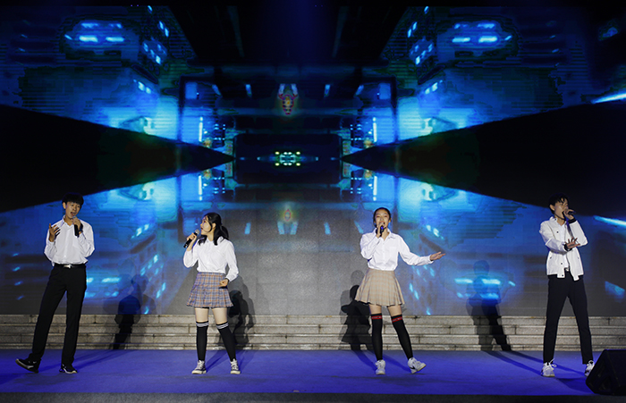 我校党委书记、校长魏华中发表致辞,希望同学们用自己独特的青春符号,唱出动人旋律,为祖国献上颂歌;舞动激昂节奏,呈现一场别开生面、精彩动人的视听盛宴;希望全体教职员工一起共享学校养成教育结出的文化硕果,一起品味校园文化体系构建下的文艺大餐。