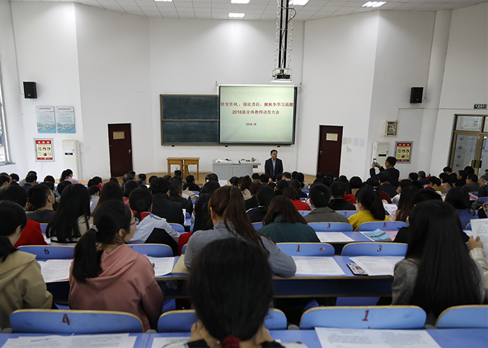 10月22日上午, 2018级为抓住冬季学习的黄金季节,在全体师生中营造“比学赶帮超”的浓厚学习氛围,在我校5号教学楼报告厅,由张玉富副校长召开了2018级全体教师“转变作风,强化责任,掀秋冬学习高潮”动员大会。