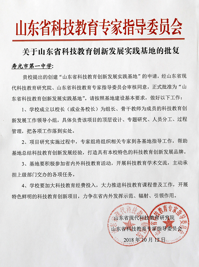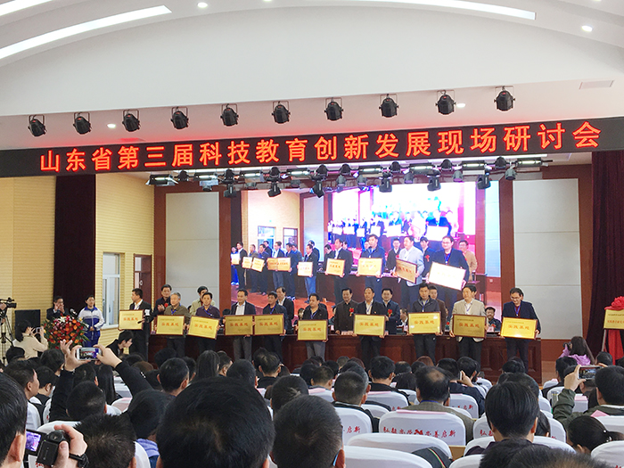 我校提出创建“山东省科技教育创新发展实践基地”的申请,经山东省现代科技教育研究院、山东省科技教育专家指导委员会审核同意,正式批准我校为“山东省科技教育创新发展实践基地”并现场授牌。会议站在科技教育创新发展的前沿,聚焦了全国顶尖的科技教育专家、学者、教授。会议开幕式上李维福、林化梁、于洪文、郭永军等多位科技教育领域的知名专家出席会议并讲话。