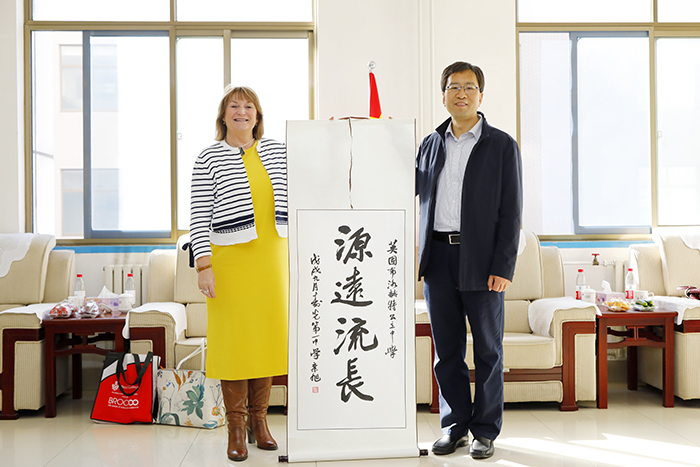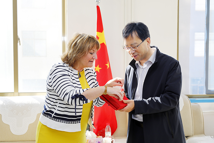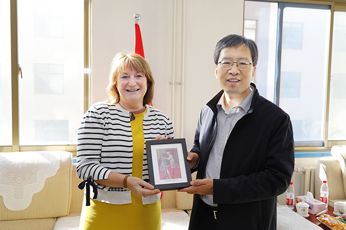 10月26日上午, 英国布洛赫特公立中学校长Di Roberts女士一行到我校进行了交流访问。我校党委书记、校长魏华中,副校长张丰辉,国际部主任丁同波热情接待了来访嘉宾。