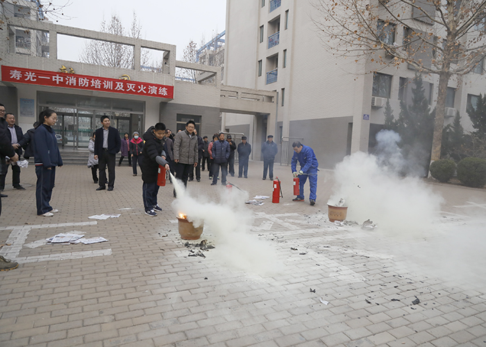 我校于12月21日上午组织全体楼管员、宿舍管理员、高中部和初中部各班安全员在乾园进行了消防灭火演练。教育处张志胜主任、安保科徐金光主任和各级部副主任参加了演练活动。